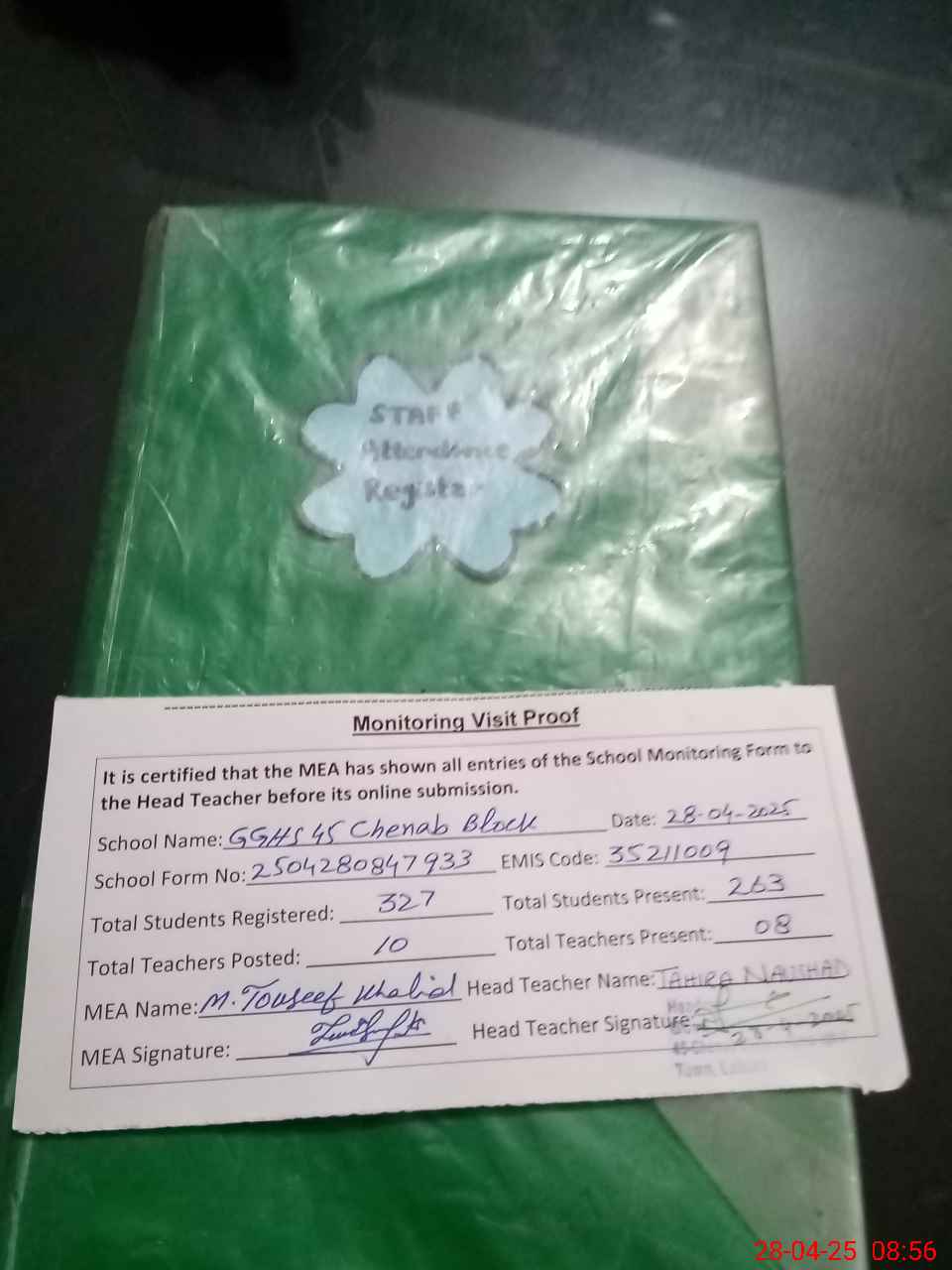 | EMIS Code: 35211009 | Name of School: GGHS 45- CHENAB BLOCK ALLAMA IQBAL TOWN | |||