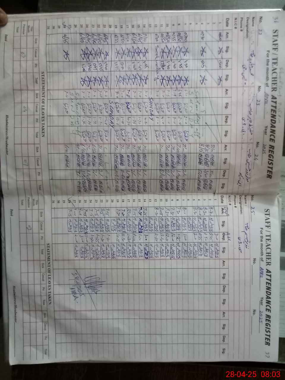 | CNIC | Full Name | Designation | R/C | Absence During Last Calender Month |