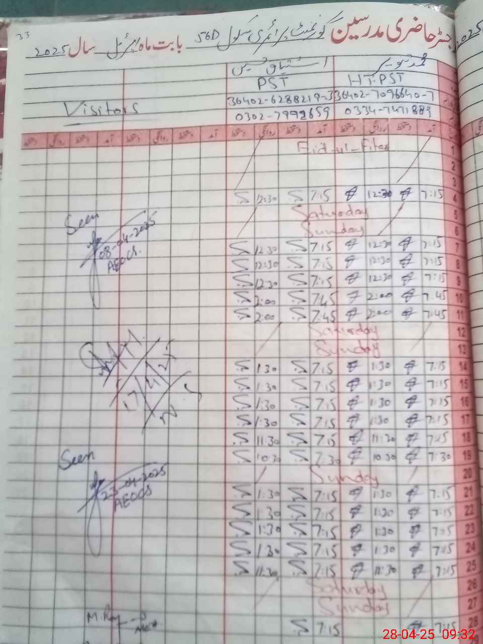 | Name: MTa**** Designation: (School Headmaster's/Headmistress's) PST Phone/Cell Number: 03**** |