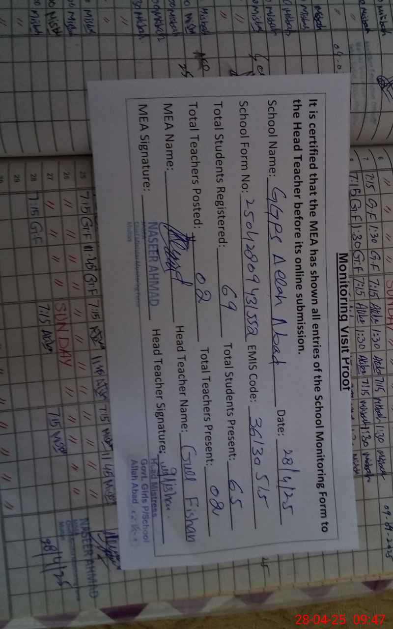 | EMIS Code: 36130515 | Name of School: GGPS ALLAH ABAD MULTAN | |||