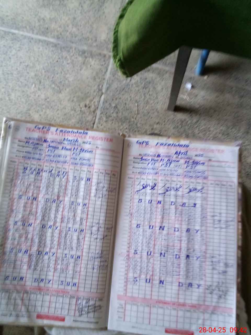 | 35**** | Mu**** Az**** | PST | Regular | 0 | 0 | 0 | 0 | 0 | 0 | 0 | 0 | 0 | Exam Duty |