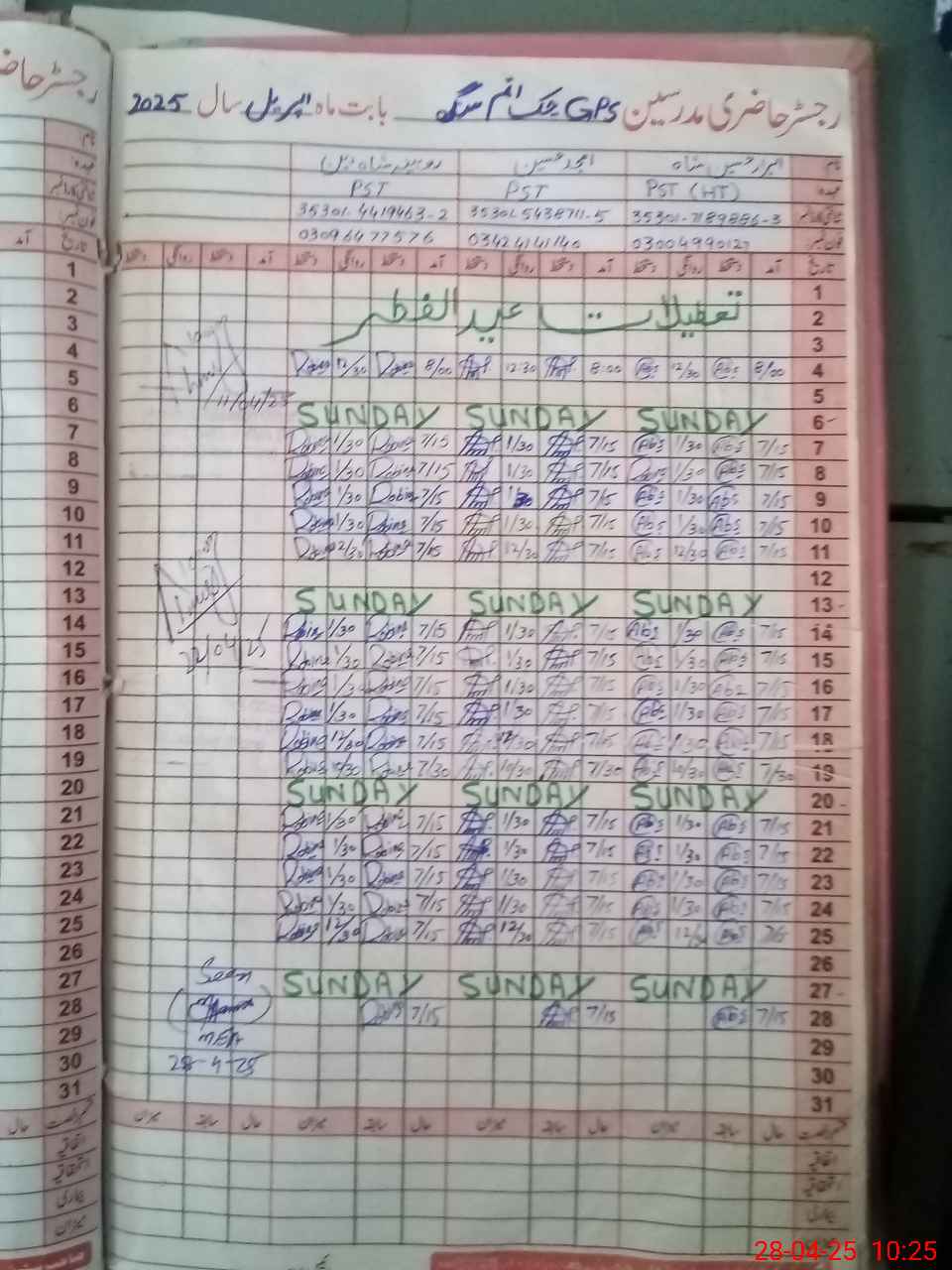 | Name: AB**** HU**** SH**** Designation: (School Headmaster's/Headmistress's) PST Phone/Cell Number: 03**** |