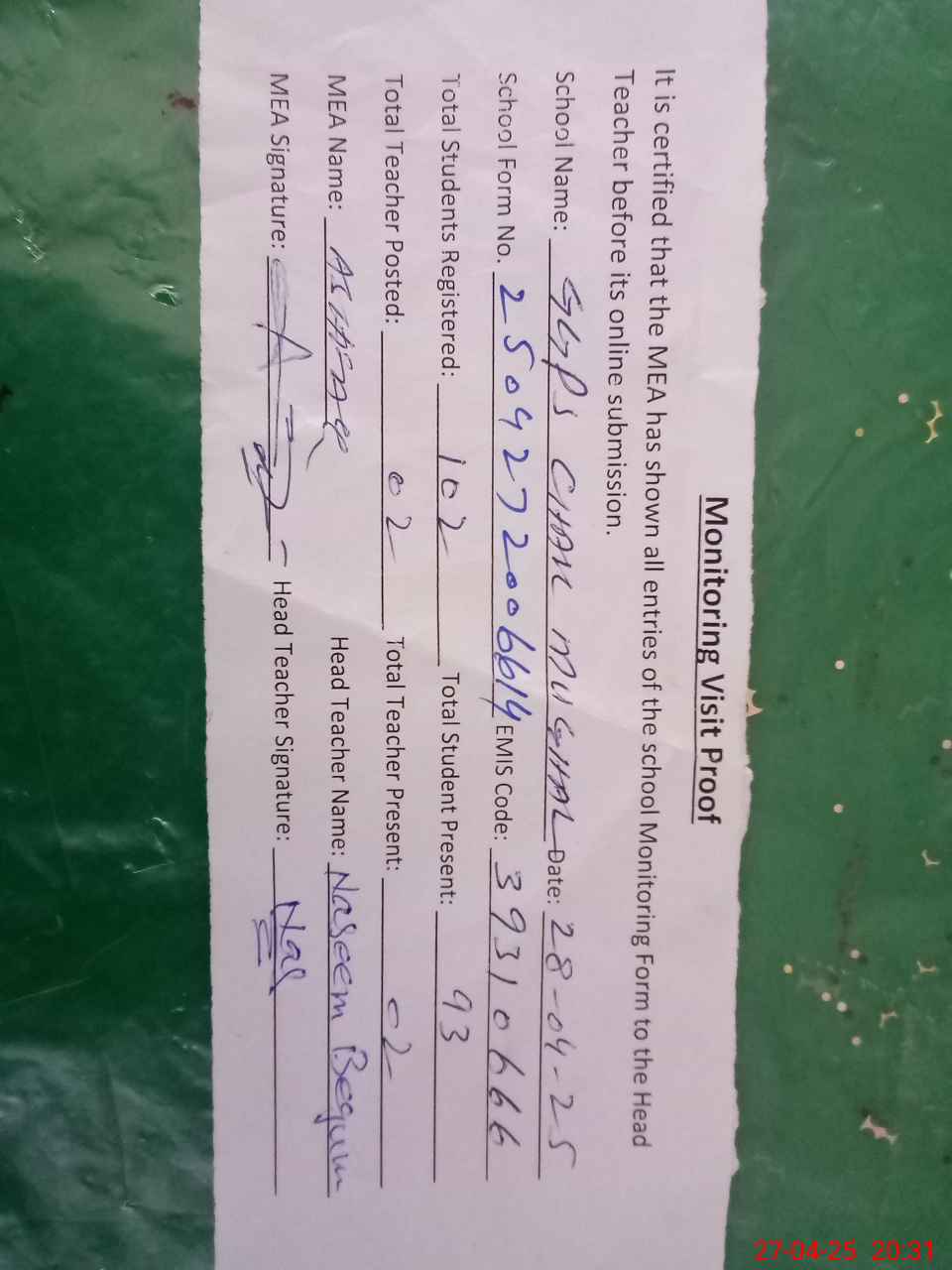 | EMIS Code: 39310666 | Name of School: GGPS CHAK MUGHAL | |||