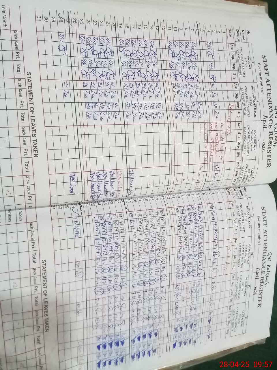 | Remarks (Use Separate Page if Required): JC Muhammad Atif Rauf Khan absent wef 01 March 2025 due to leave not approved and also authy letter of Temporary duty not available in the school | |||||