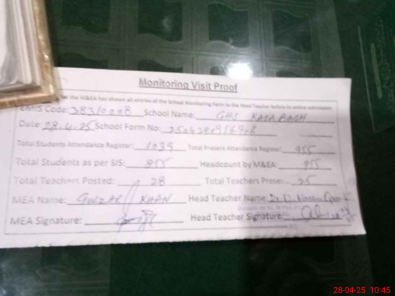 | EMIS Code: 38310008 | Name of School: GHS KALA BAGH | |||