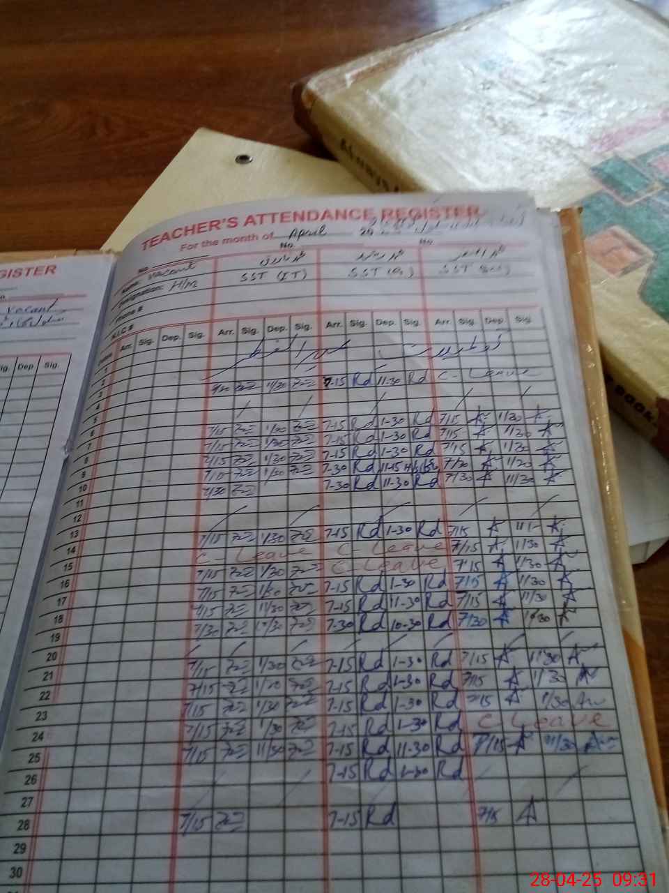 | CNIC | Full Name | Designation | R/C | Absence During Last Calender Month |