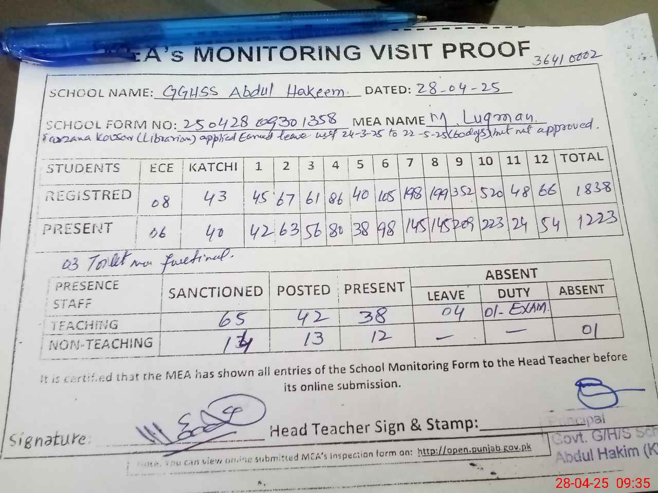 | EMIS Code: 36410002 | Name of School: GGHSS ABDUL HAKIM, ABDUL HAKIM | |||