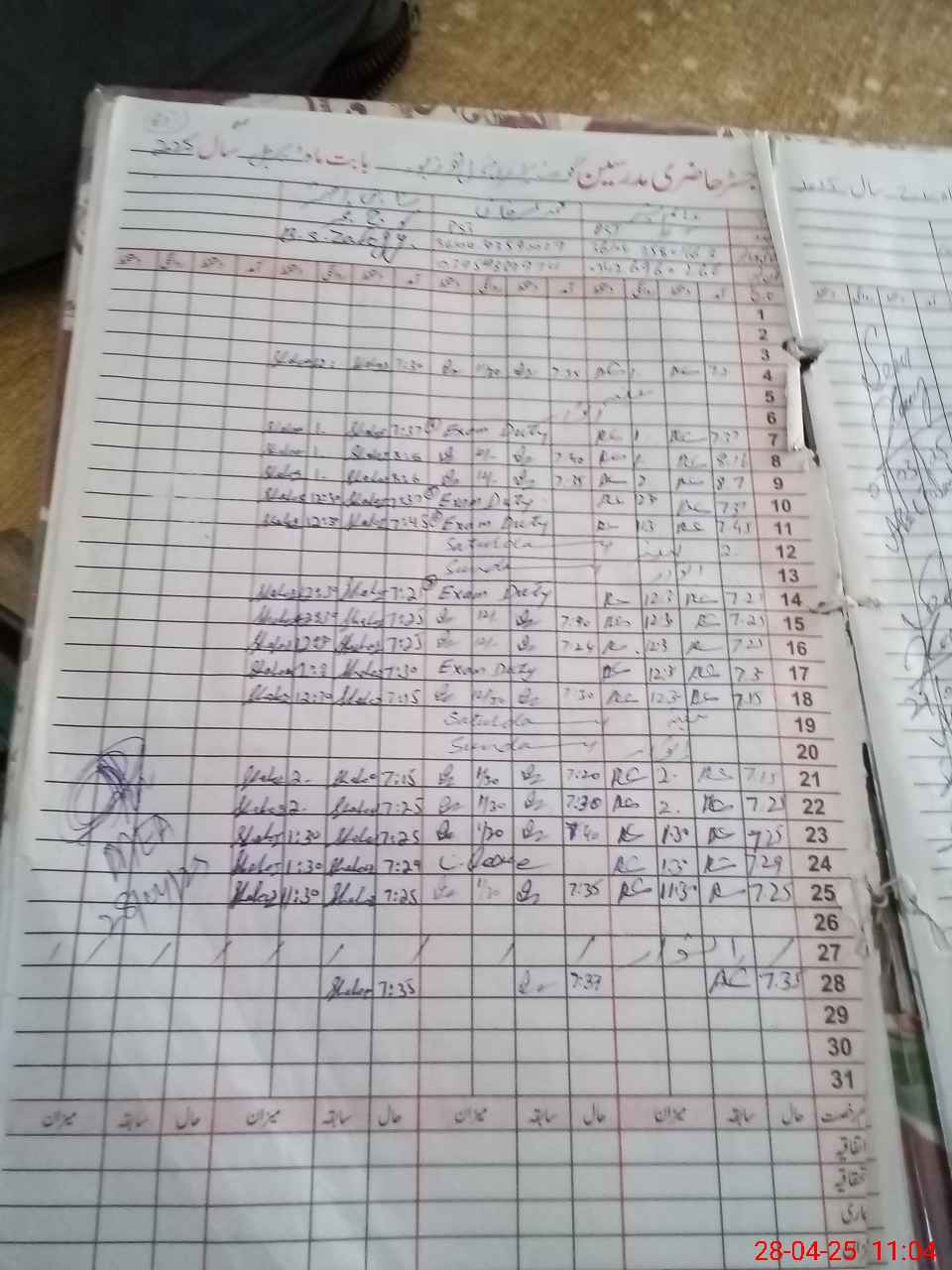 | CNIC | Full Name | Designation | R/C | Absence During Last Calender Month |