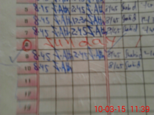 | Monitoring Date: 10-03-2015 | Start Time: 10-03-2015 11:29 AM | End Time: 10-03-2015 11:43 AM | Name of MEA: Mu**** As**** | |