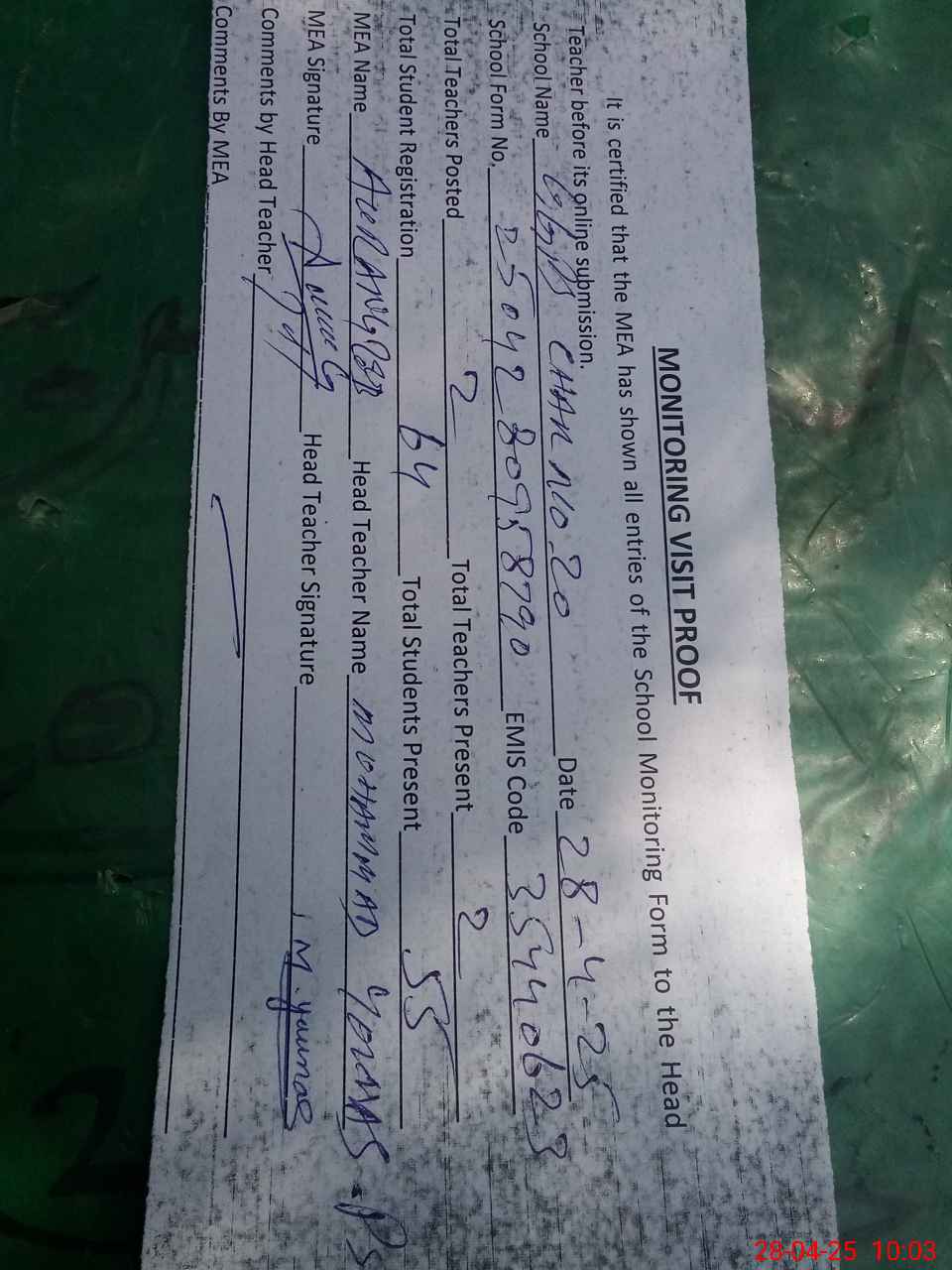 | EMIS Code: 35440623 | Name of School: GGPS CHAK NO. 20 SHARQPUR | |||