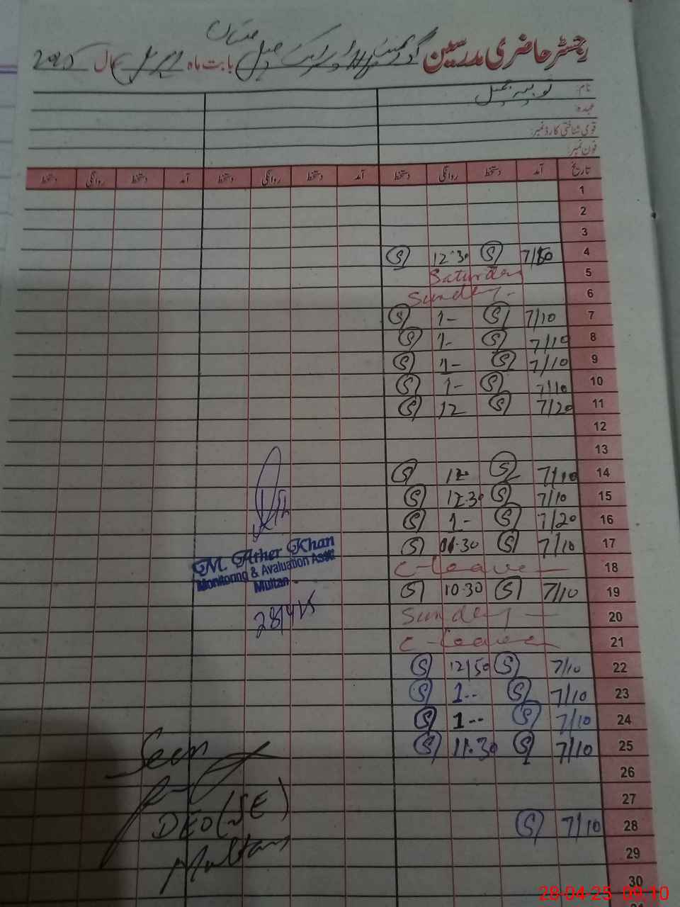 | 36**** | Ab**** Kh**** | SST | Regular | 0 | 0 | 0 | 0 | 0 | 0 | 0 | 0 | 0 | Exam Duty |