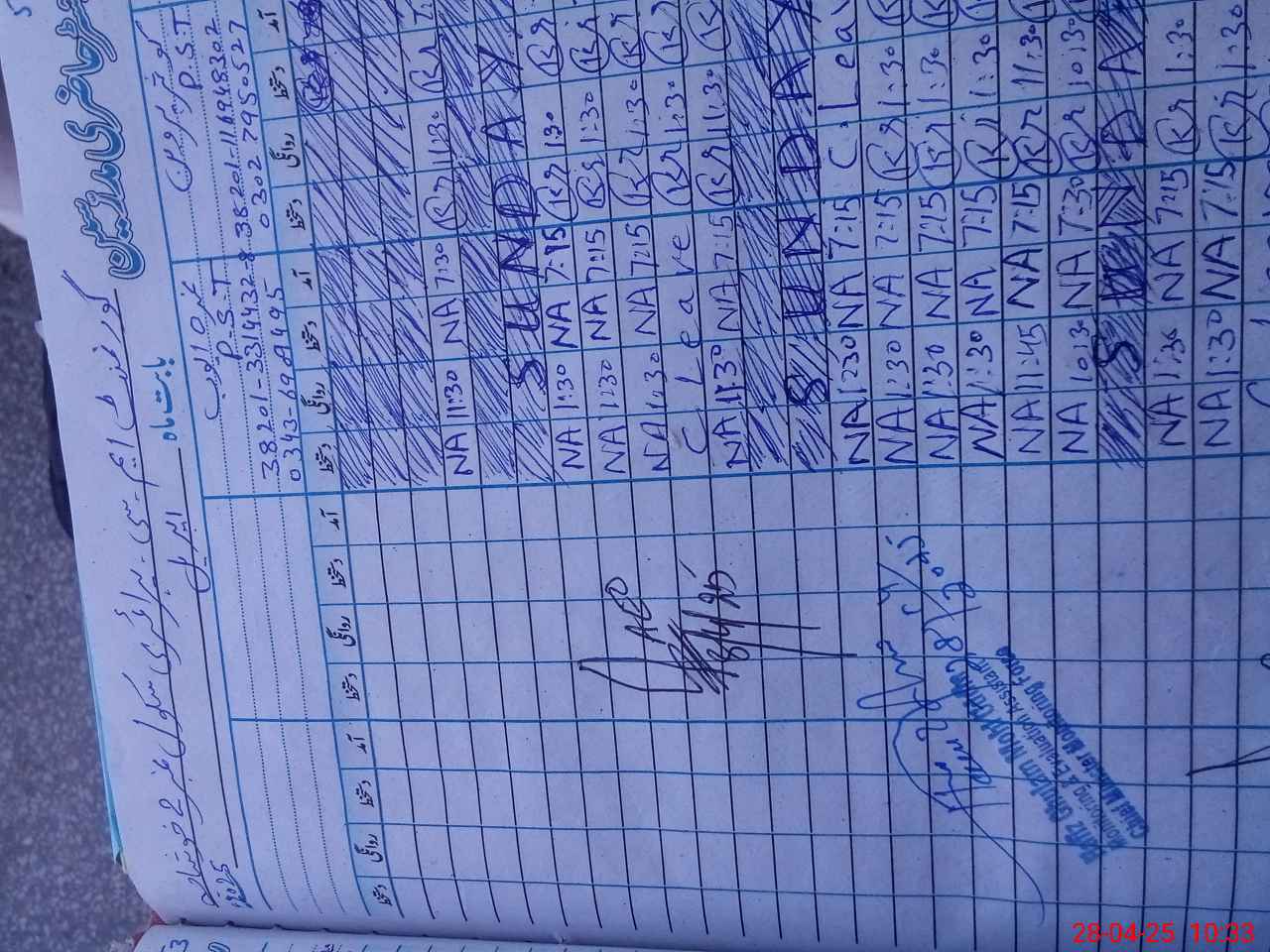 | CNIC | Full Name | Designation | R/C | Absence During Last Calender Month |