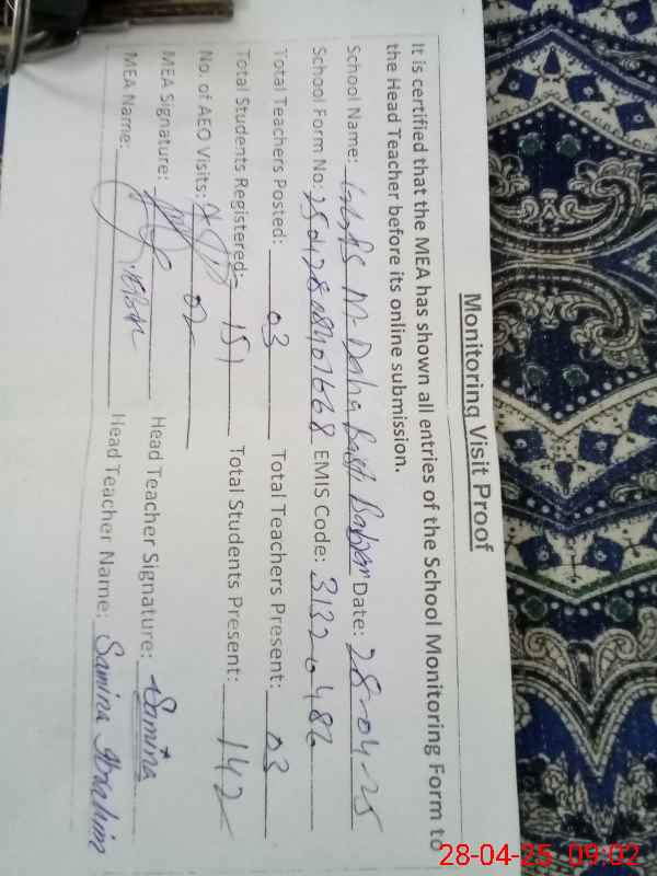 | EMIS Code: 31320486 | Name of School: GGPS MUHAMMAD DAHA BASTI BABRAN | |||