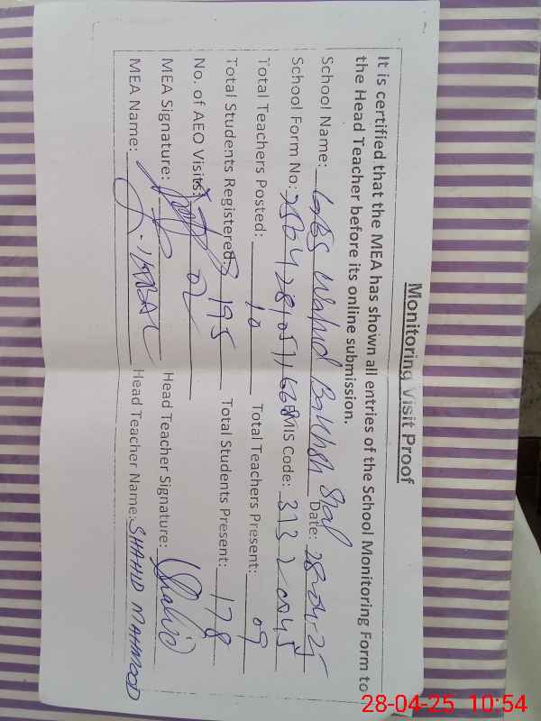 | Certified that this School was Inspected by the Undersigned MEA/DMO Today and the Information Stated Above is as Per Record. | |||||