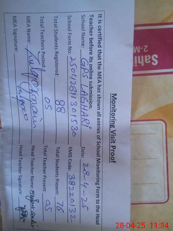 | EMIS Code: 38220132 | Name of School: GPS LAGHARI | |||