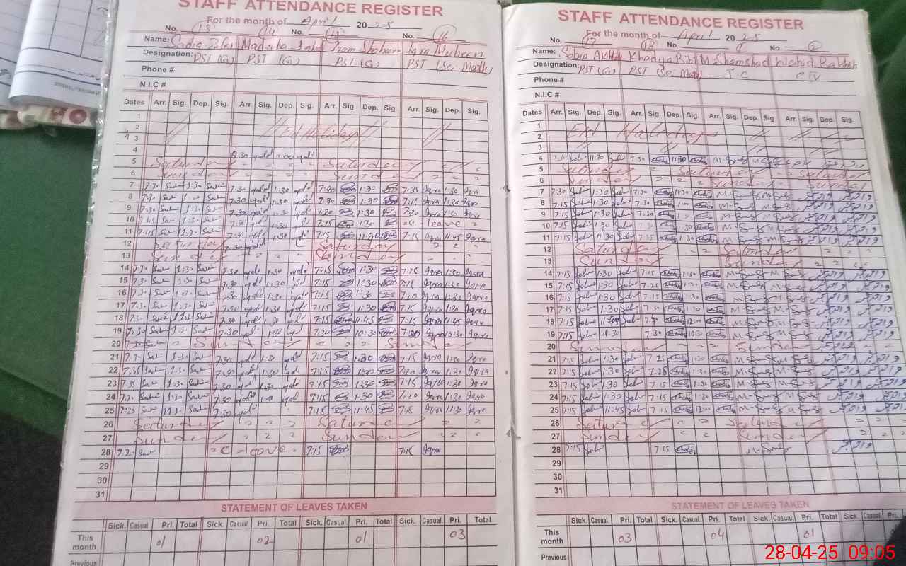 | CNIC | Full Name | Designation | R/C | Absence During Last Calender Month |