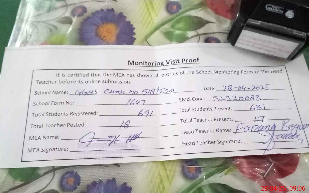 | EMIS Code: 32320083 | Name of School: GGHS CHAK NO. 518/TDA | |||