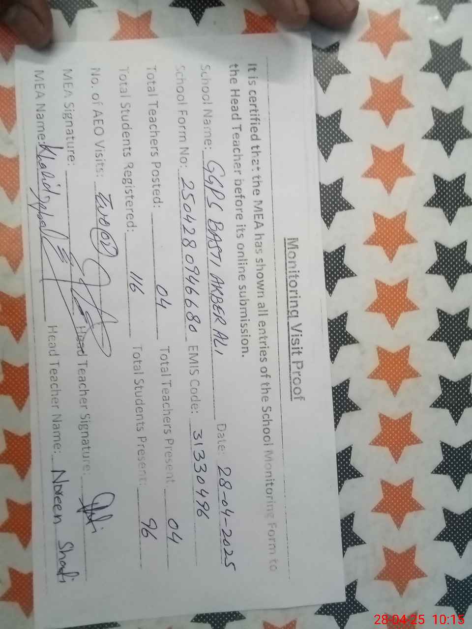 | EMIS Code: 31330496 | Name of School: GGPS BASTI AKBAR ALI | |||