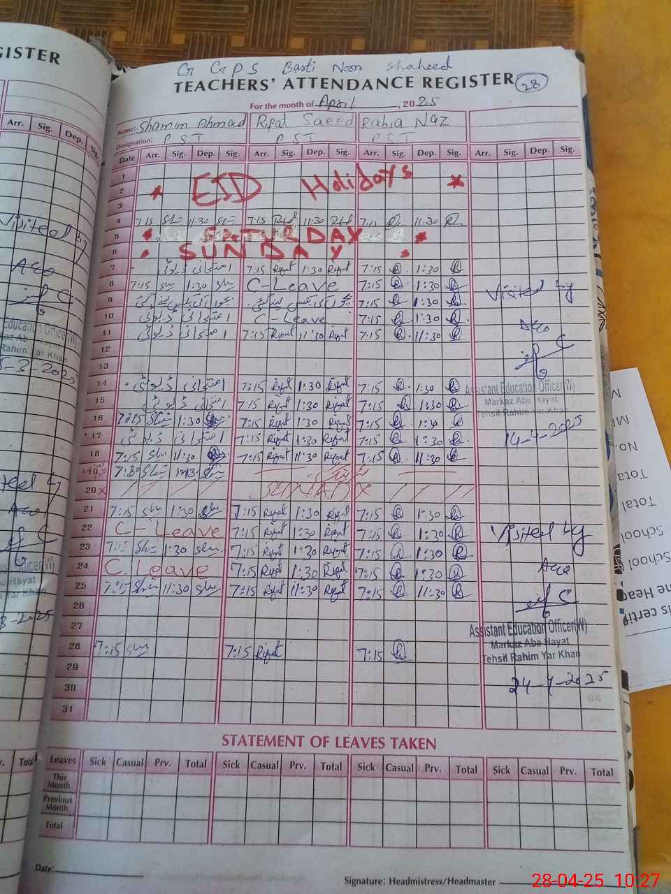 | Leave | Duty | Absent | Maternity | Medical | Ex- Pak |