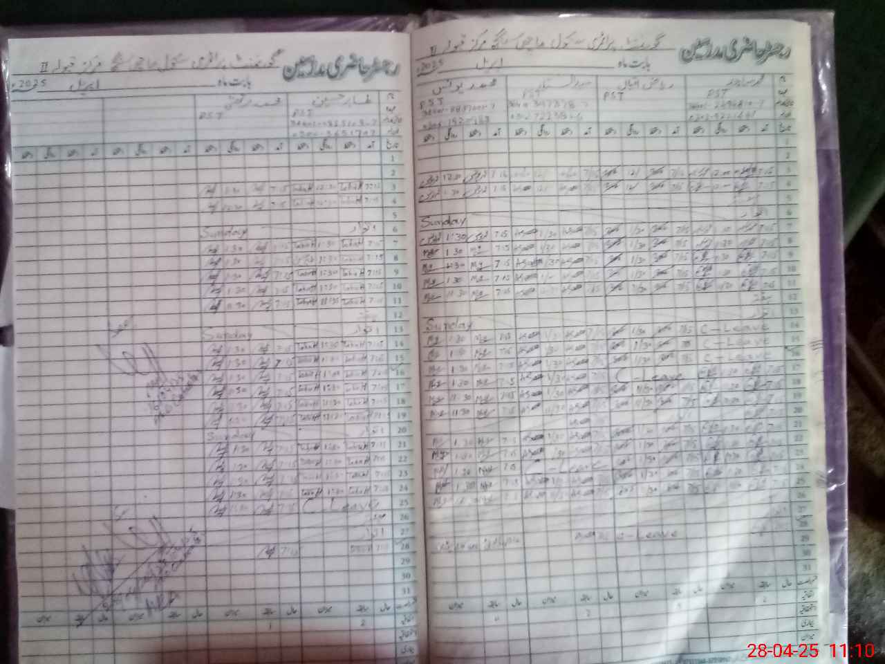 | CNIC | Full Name | Designation | R/C | Absence During Last Calender Month |
