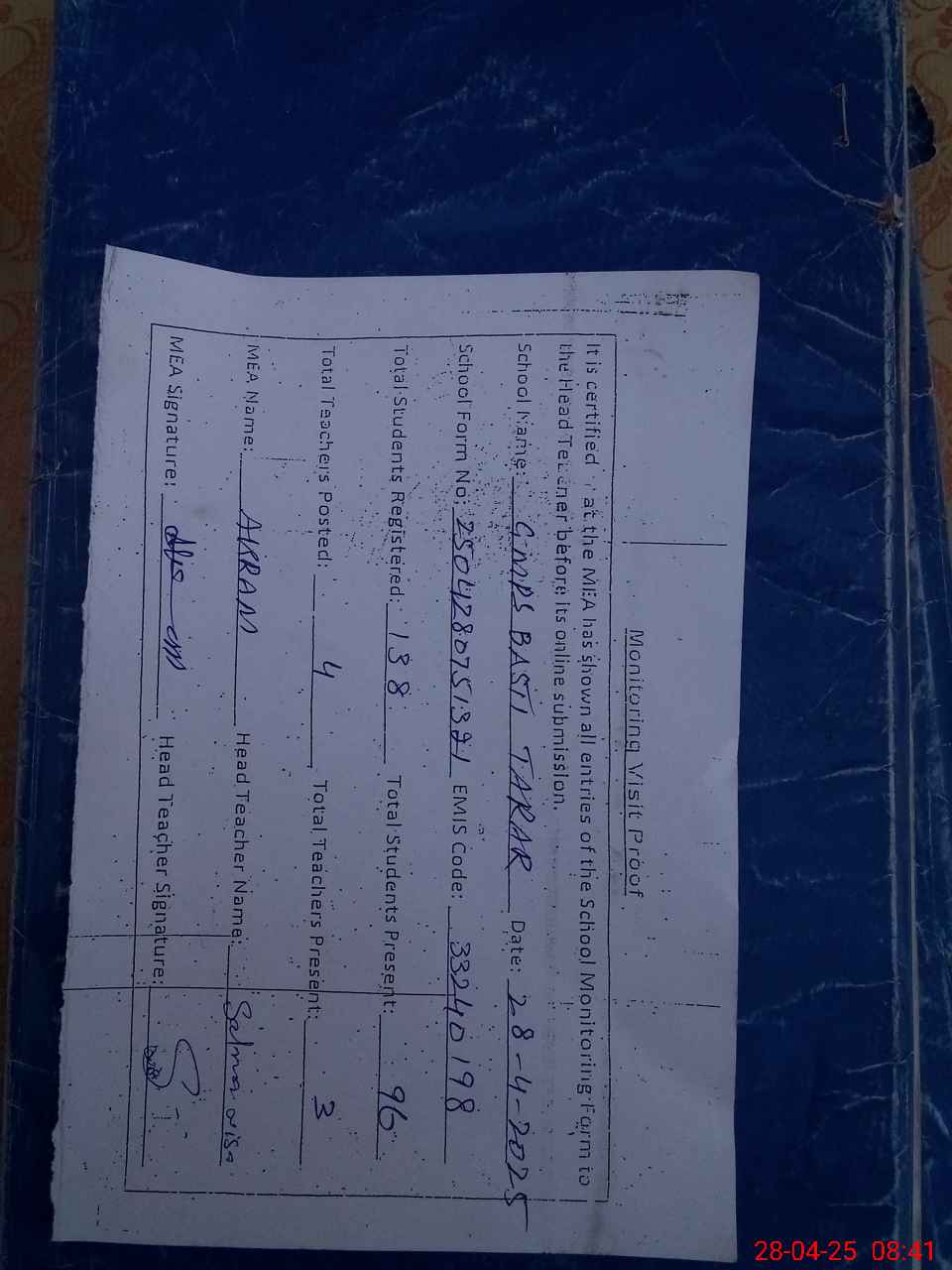 | EMIS Code: 33240198 | Name of School: GMPS BASTI TARAR | |||
