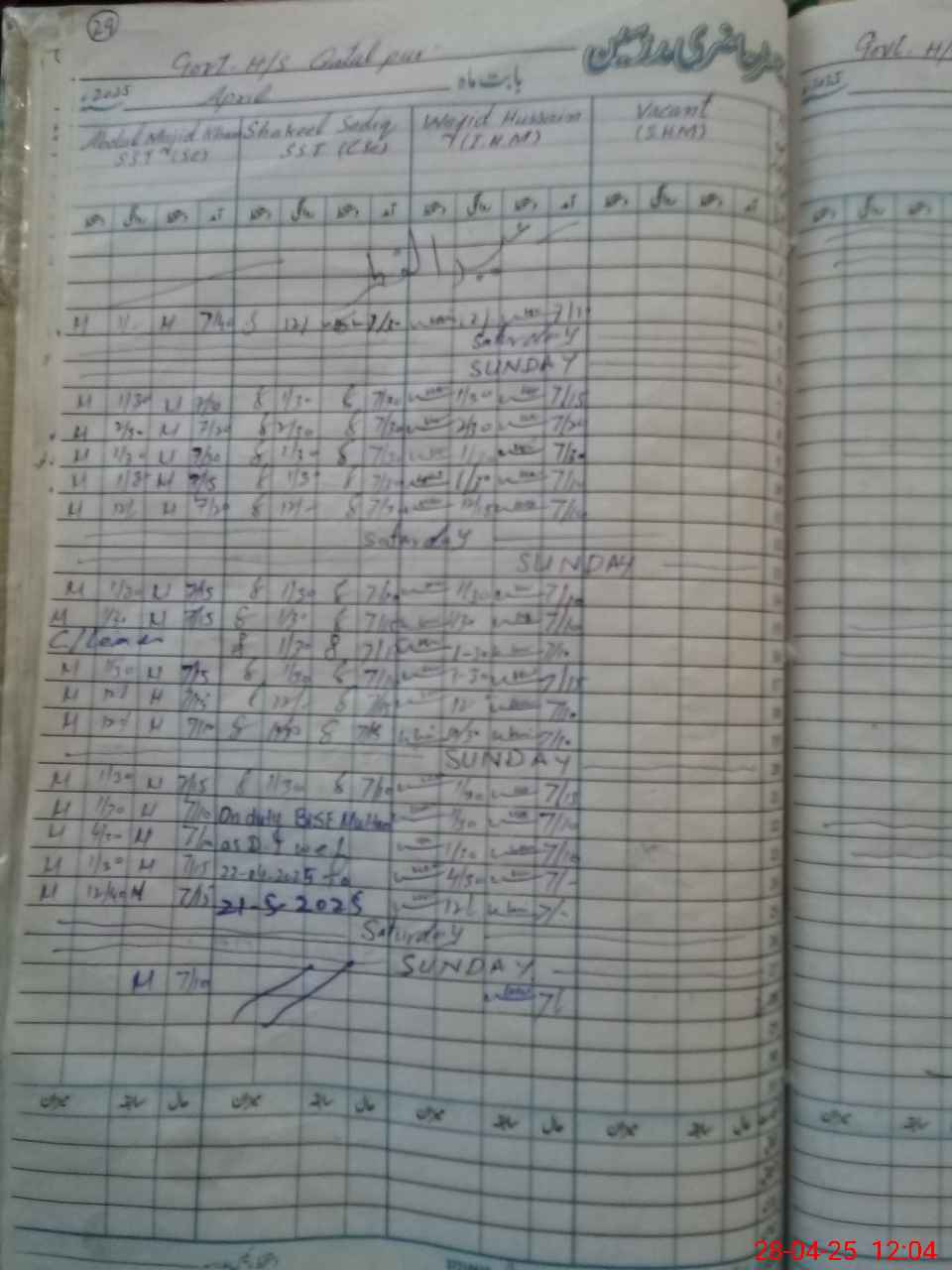 | 36**** | Sh**** Sa**** | 5 | 1 | 0 | 0 | 0 | 0 | 0 | 0 | 0 | 0 | 0 | Exam Duty |