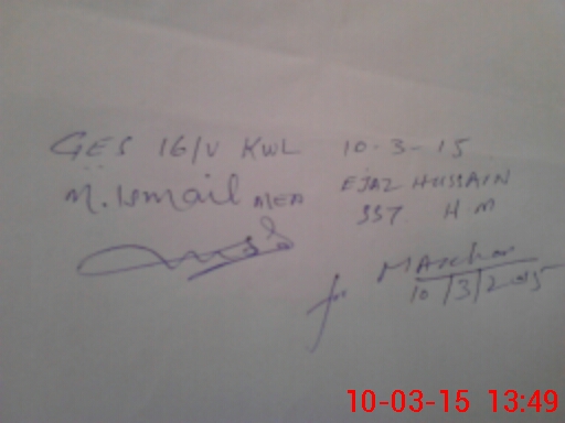 | Monitoring Date: 10-03-2015 | Start Time: 10-03-2015 01:20 PM | End Time: 10-03-2015 01:49 PM | Name of MEA: Z.**** M.Is**** | |