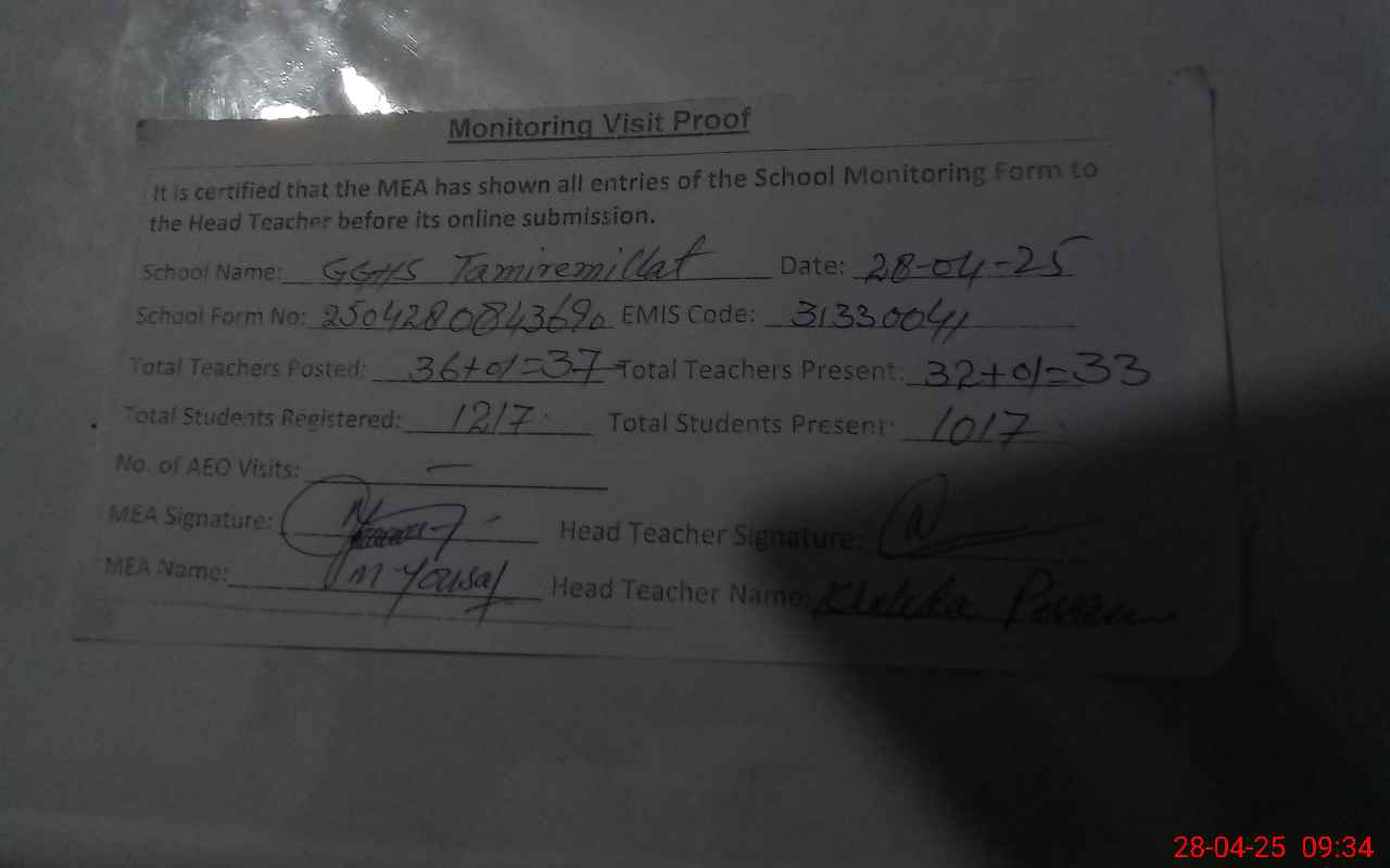 | EMIS Code: 31330041 | Name of School: GGHS TAMIR-E-MILLAT | |||