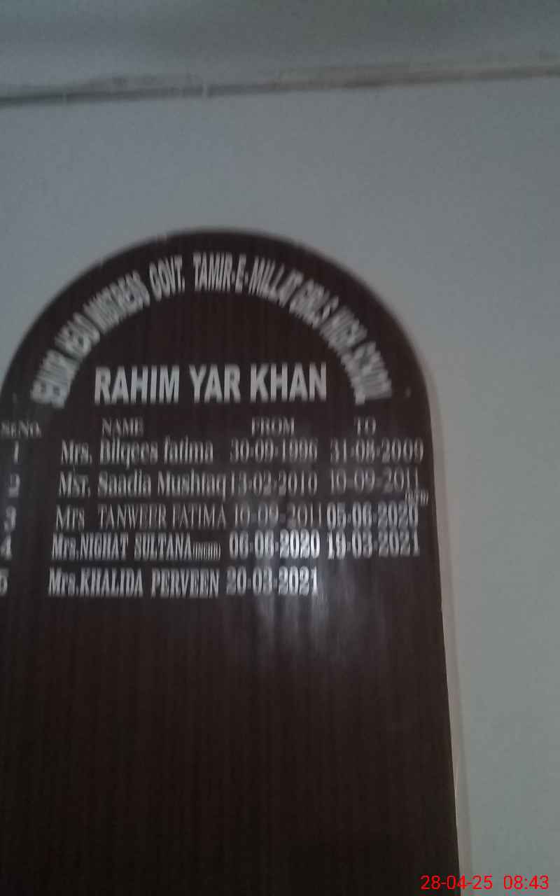 | District: RAHIMYAR KHAN | Tehsil: RAHIMYAR KHAN | Markaz: SECONDARY-WING | Level: High | |