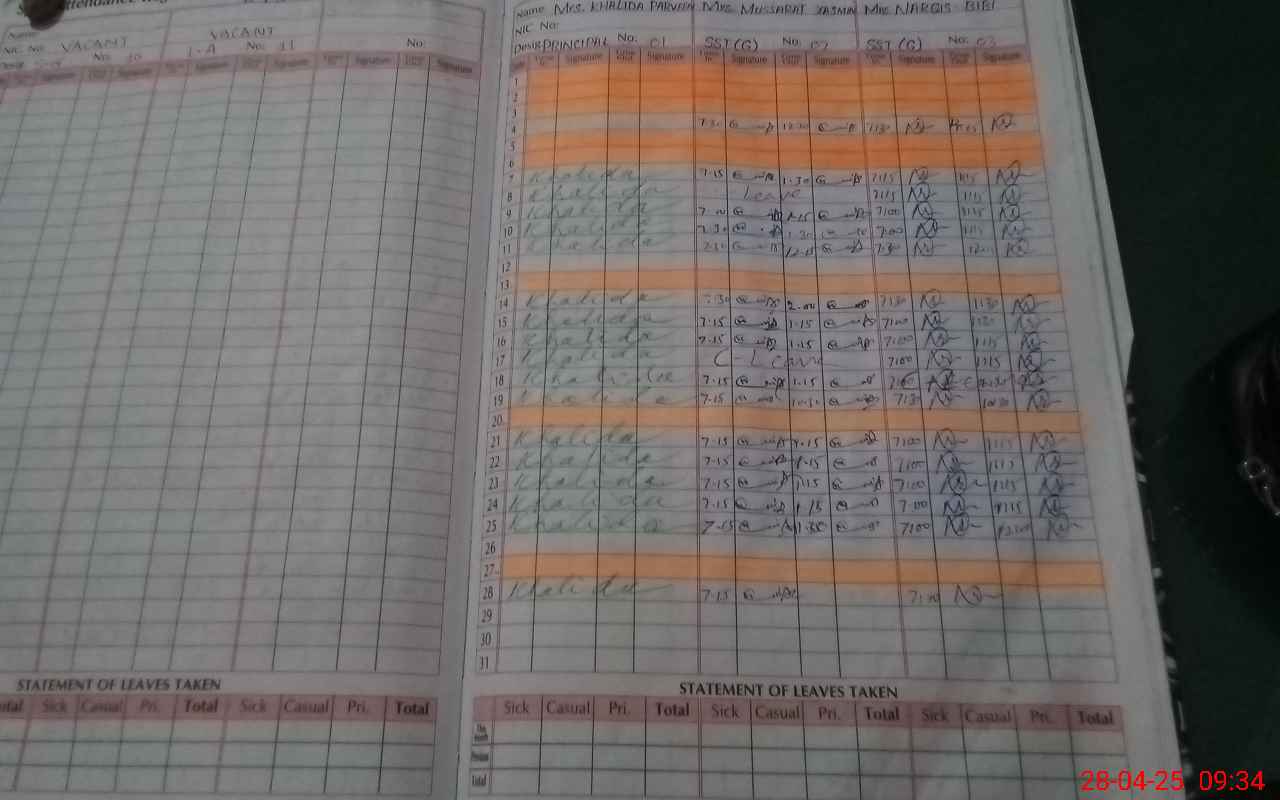 | Name: Kh**** Pe**** Designation: (School Headmaster's/Headmistress's) Principle Phone/Cell Number: 03**** |