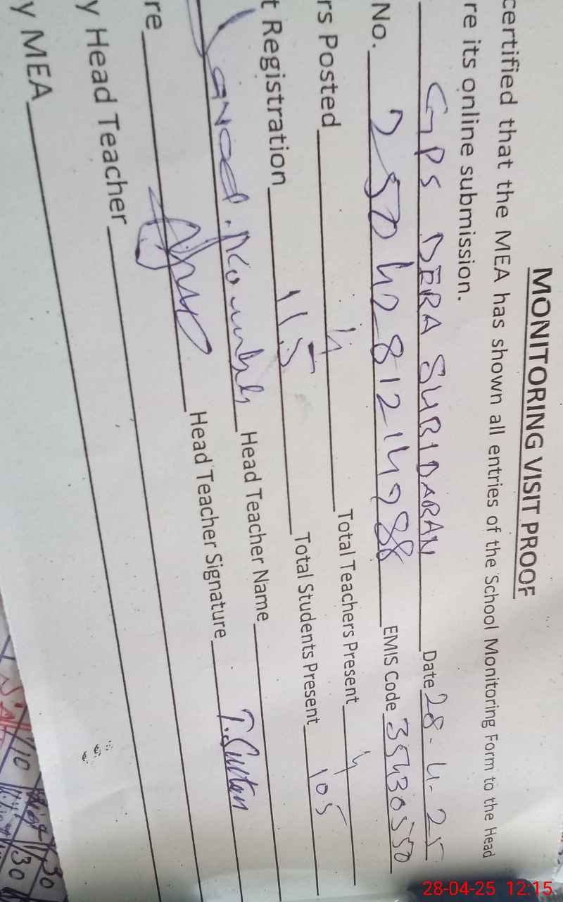 | EMIS Code: 35430550 | Name of School: GPS DERA SUBIDARAN | |||