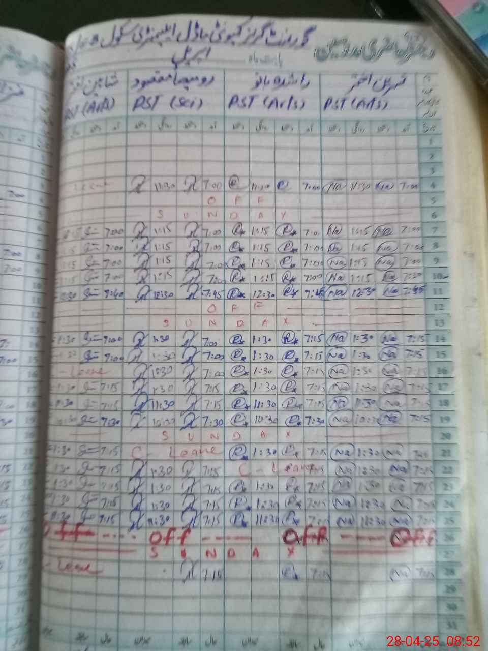 | 36**** | Sh**** Ak**** | PST | Regular | 1 | 0 | 0 | 0 | 0 | 0 | 0 | 0 | 1 | Casual |