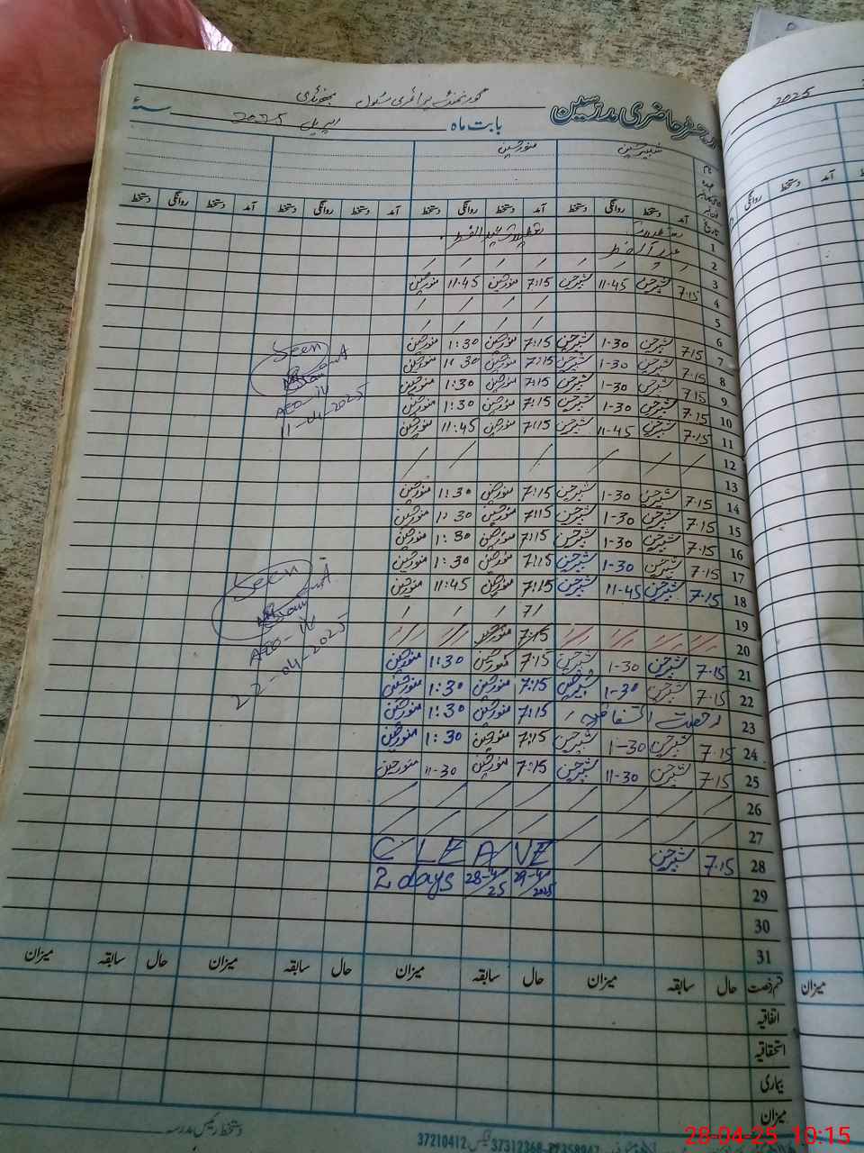 | CNIC | Full Name | Designation | R/C | Absence During Last Calender Month |