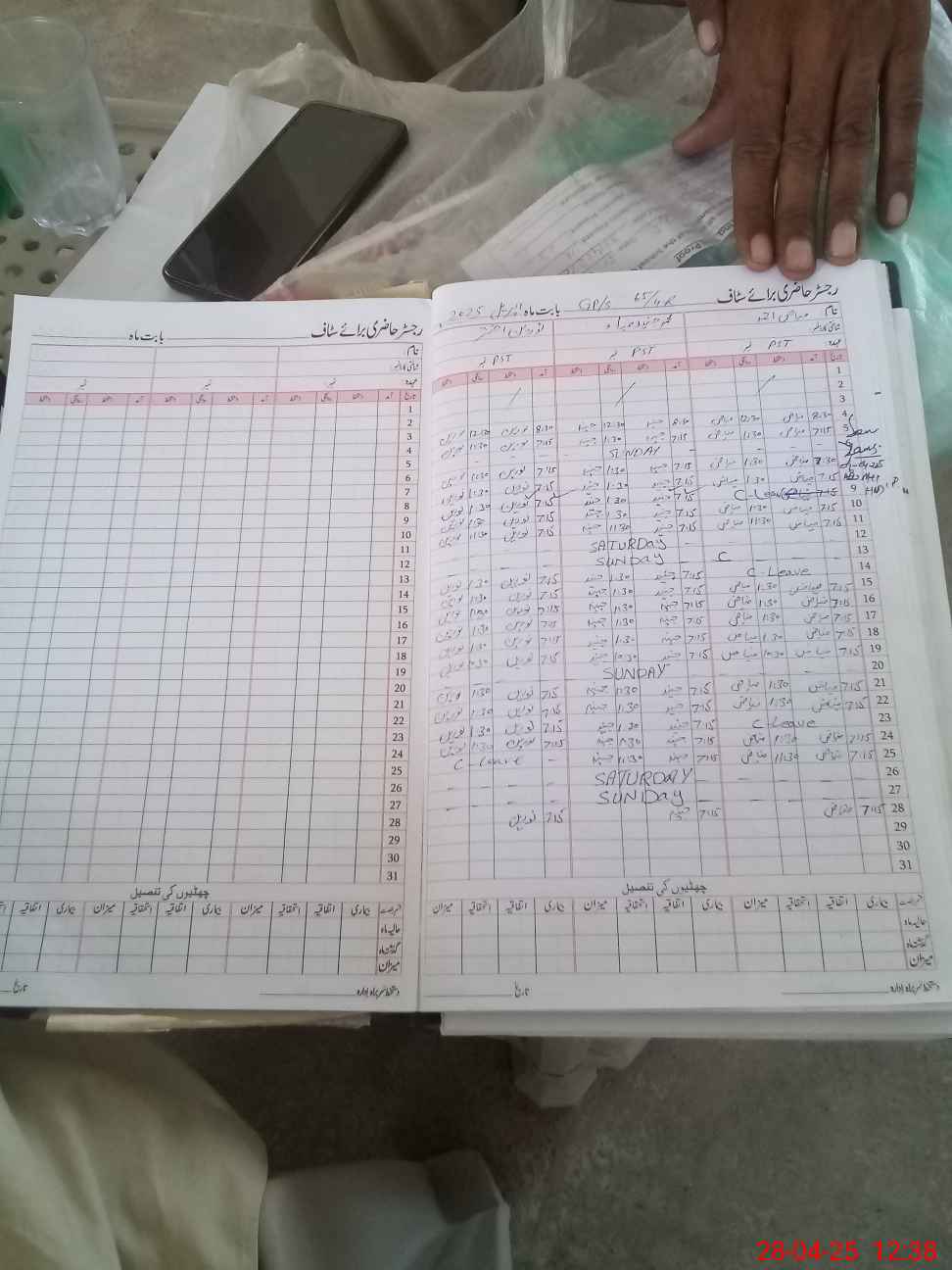 | CNIC | Full Name | Designation | R/C | Absence During Last Calender Month |