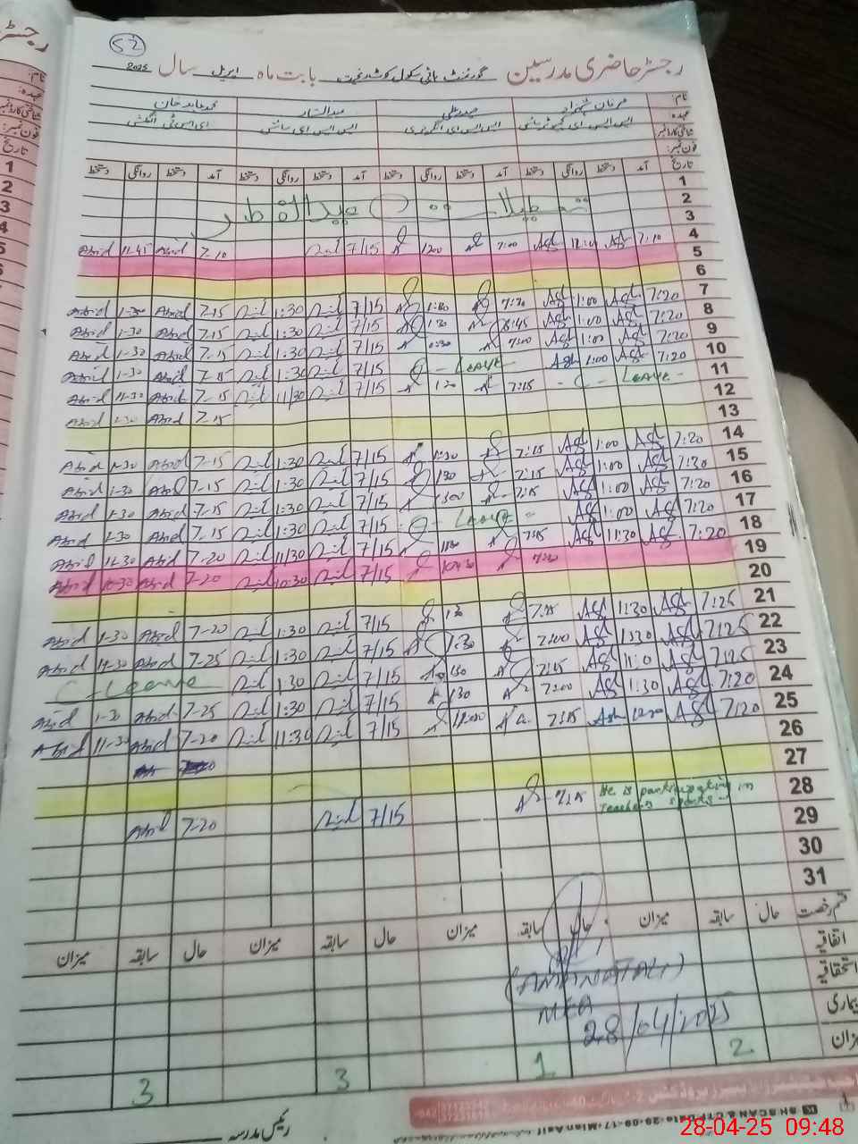 | CNIC | Full Name | Designation | R/C | Absence During Last Calender Month |