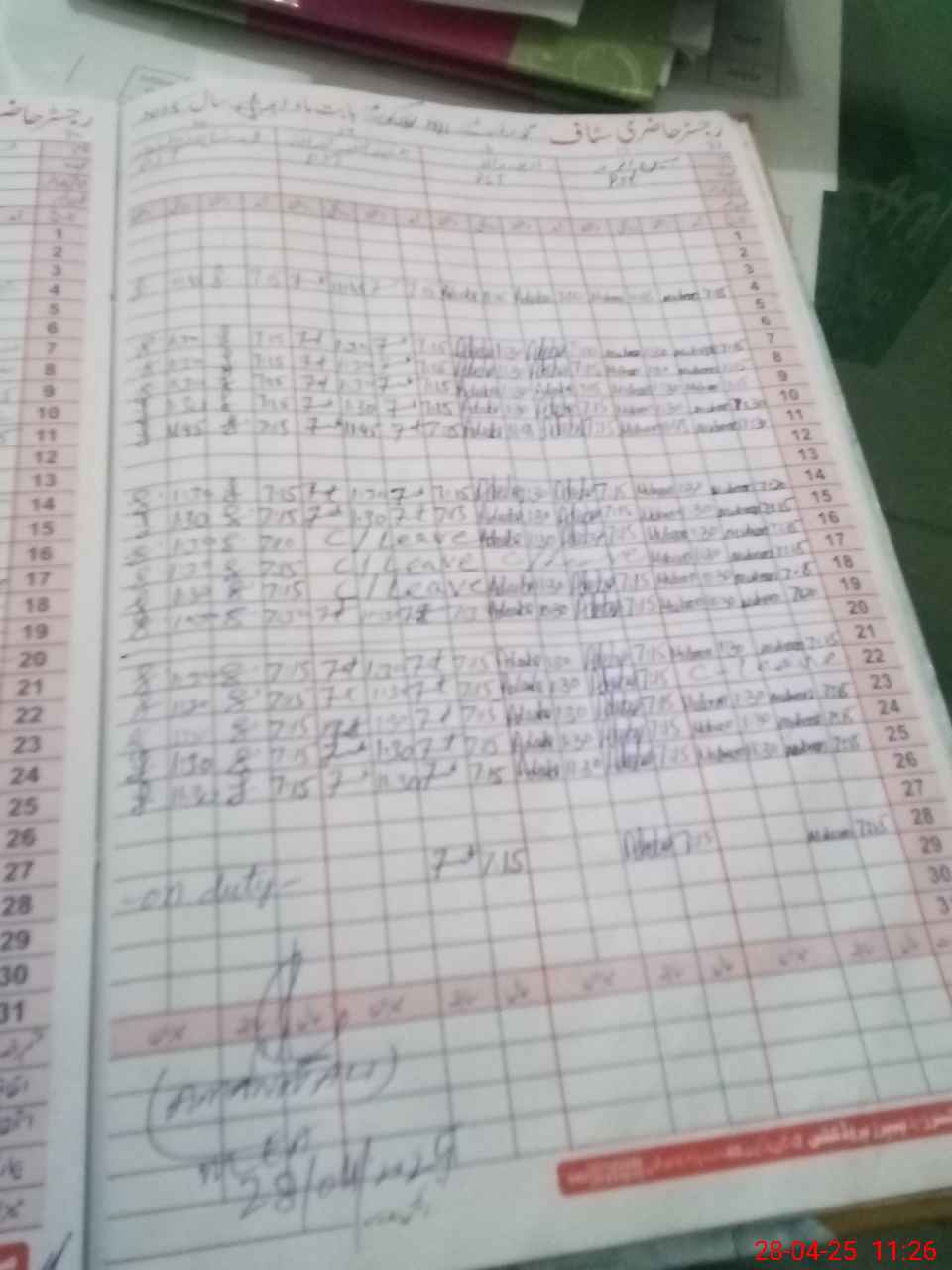 | 35**** | Mu**** Sh**** Zu**** | PST | Regular | 0 | 0 | 0 | 0 | 0 | 0 | 0 | 0 | 0 | Exam Duty |