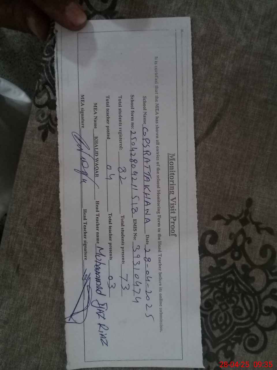 | EMIS Code: 39310474 | Name of School: GPS RATTA KHANA | |||