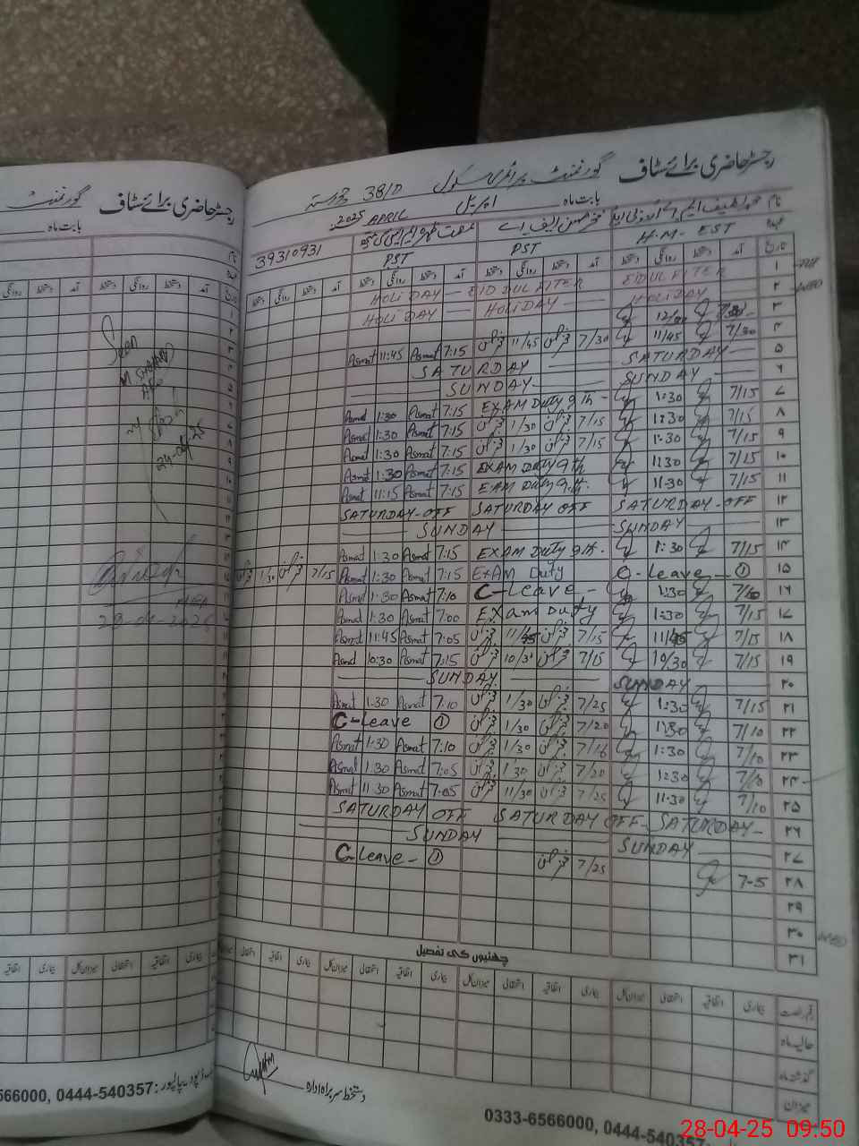 | CNIC | Full Name | Designation | R/C | Absence During Last Calender Month |