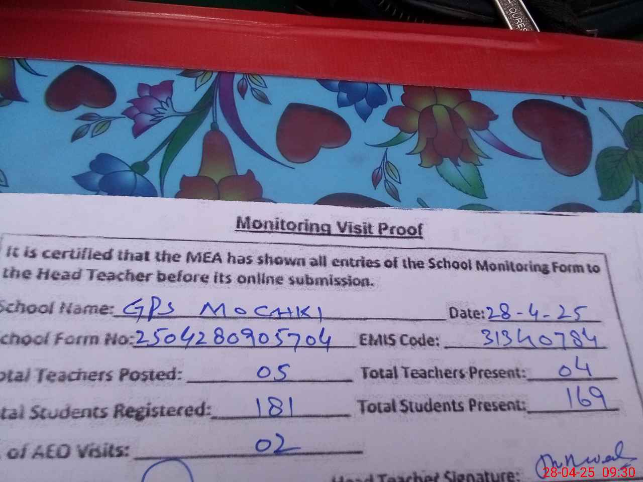| EMIS Code: 31340784 | Name of School: GPS MOCHKI | |||