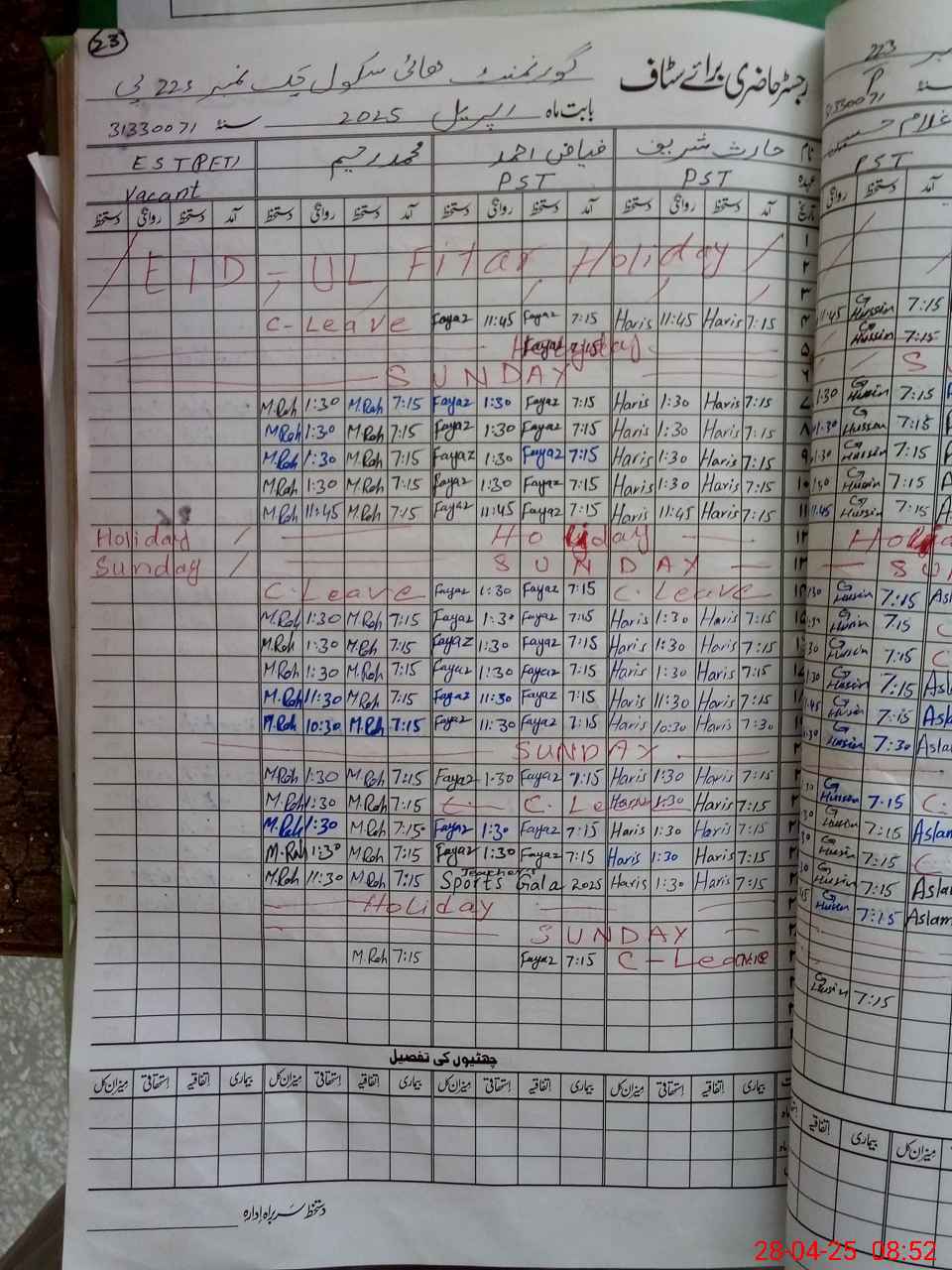 | 31**** | Ha**** Sh**** | PST | Regular | 2 | 0 | 0 | 0 | 0 | 0 | 0 | 0 | 2 | Casual |