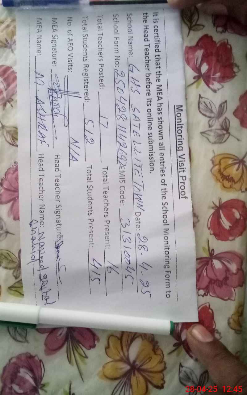| EMIS Code: 31310045 | Name of School: GHS SATELLITE TOWN KHANPUR | |||