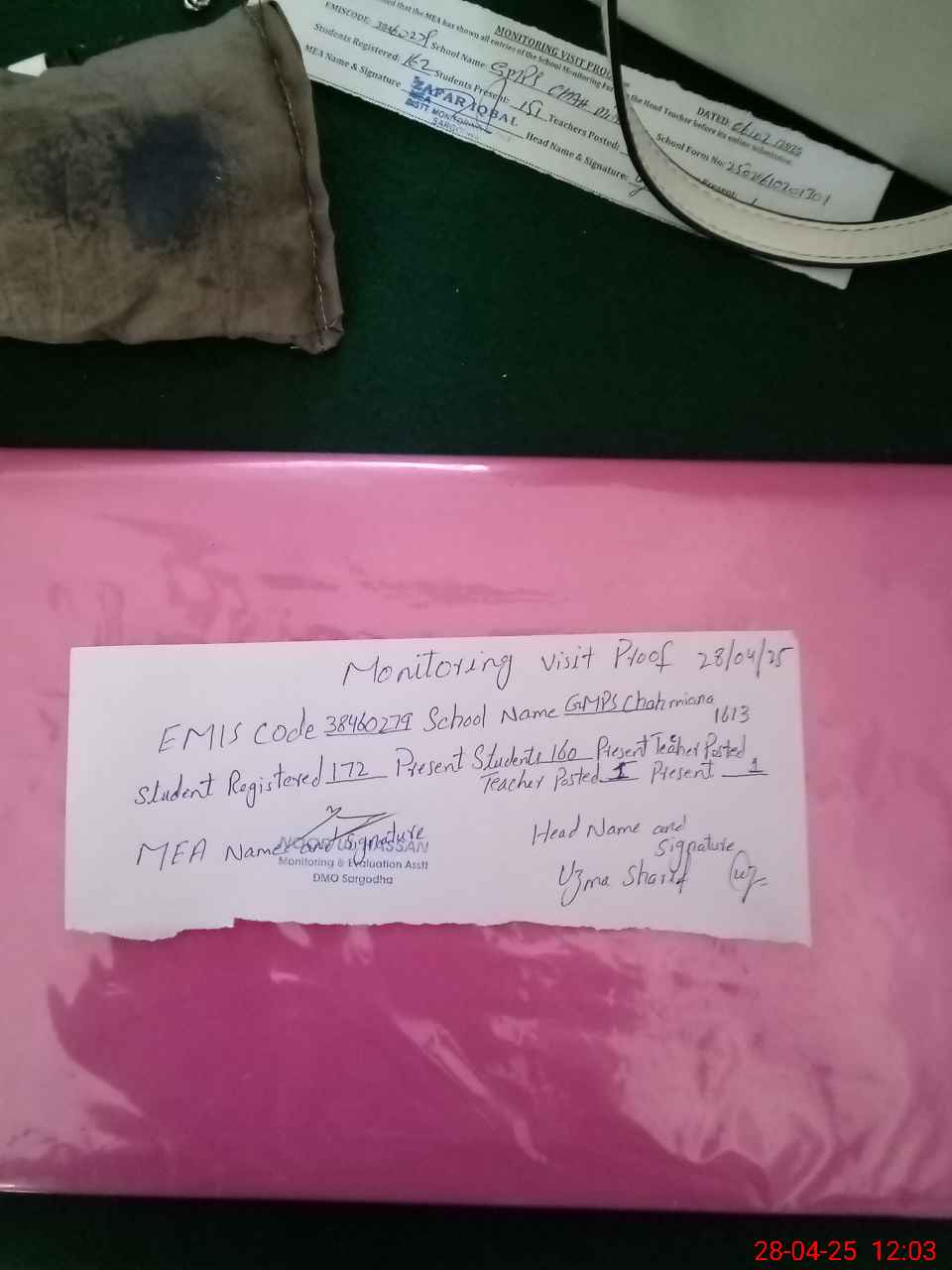 | EMIS Code: 38460279 | Name of School: GMPS CHAH MIANA | |||