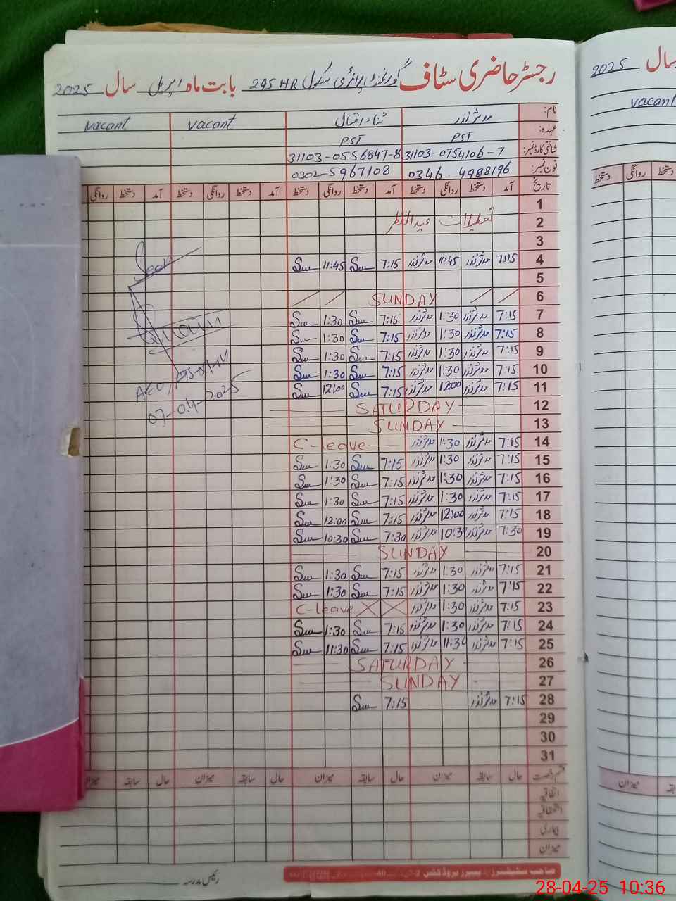 | CNIC | Full Name | Designation | R/C | Absence During Last Calender Month |