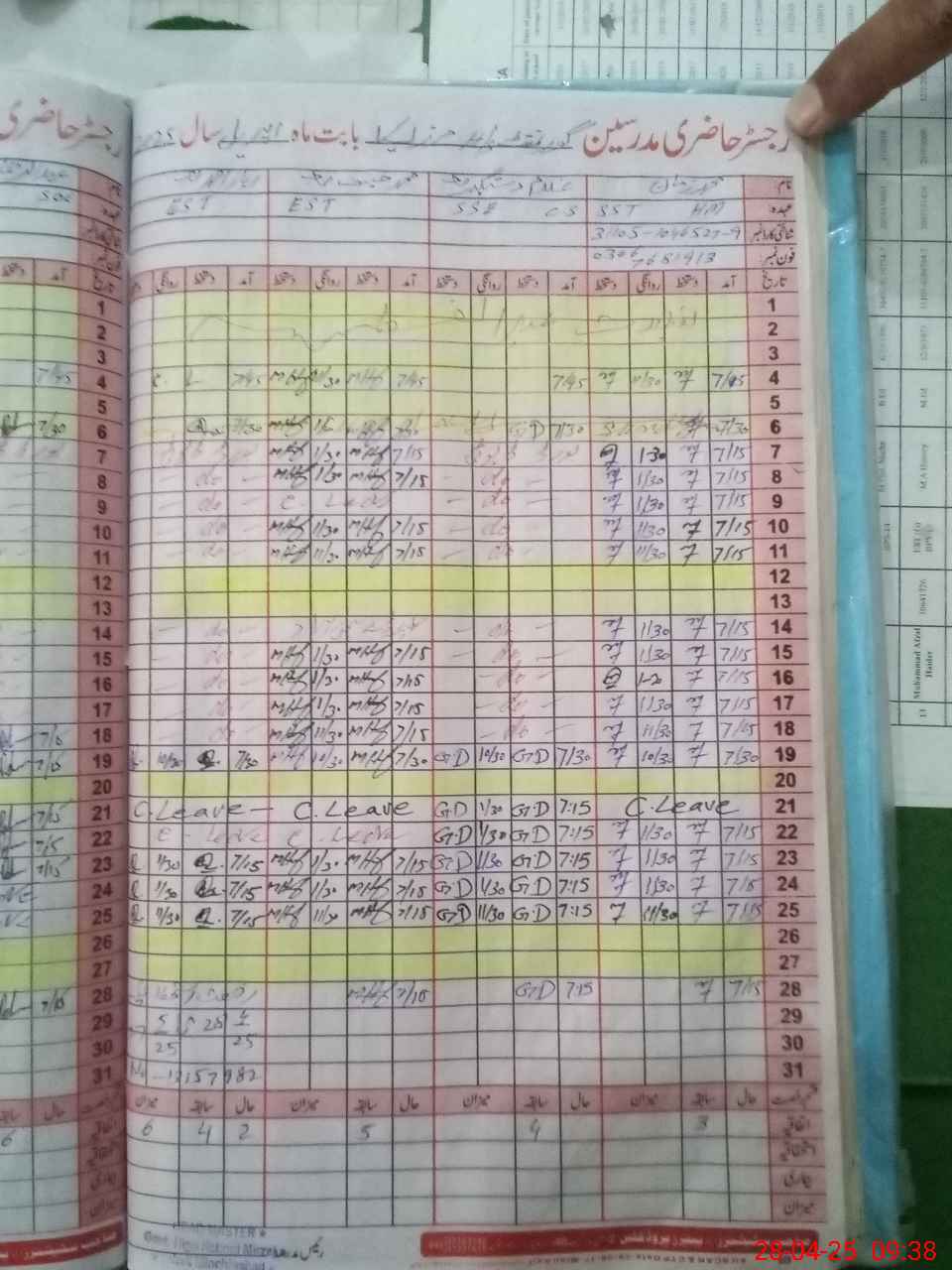 | CNIC | Full Name | Designation | R/C | Absence During Last Calender Month |