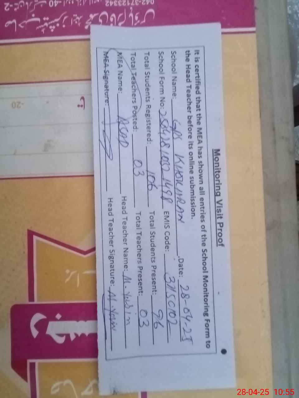 | EMIS Code: 31150102 | Name of School: GPS BASTI KHOKHRAN | |||