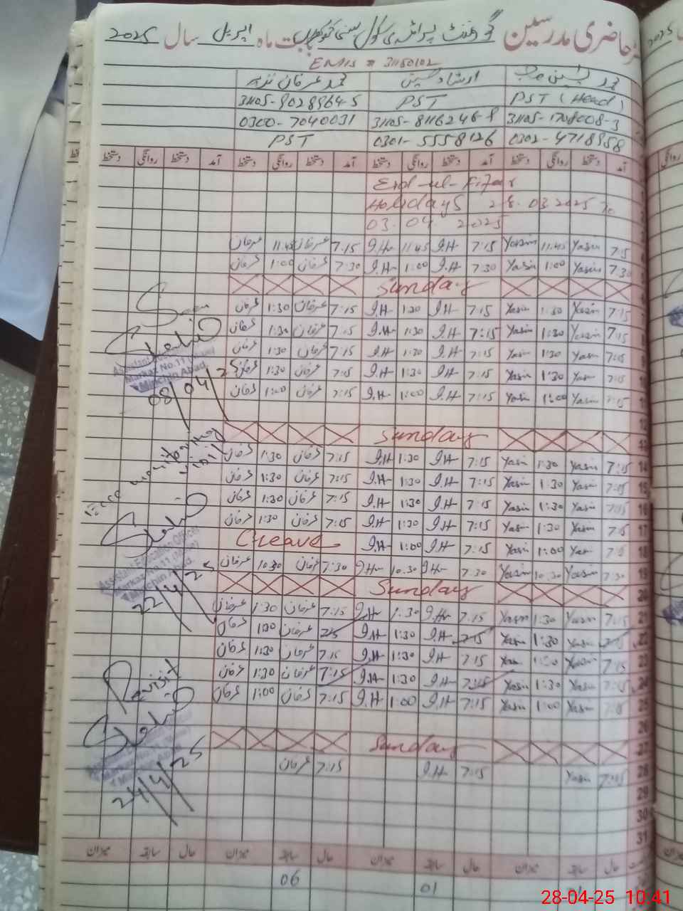 | Name: MYa**** Designation: (School Headmaster's/Headmistress's) PST Phone/Cell Number: 03**** |
