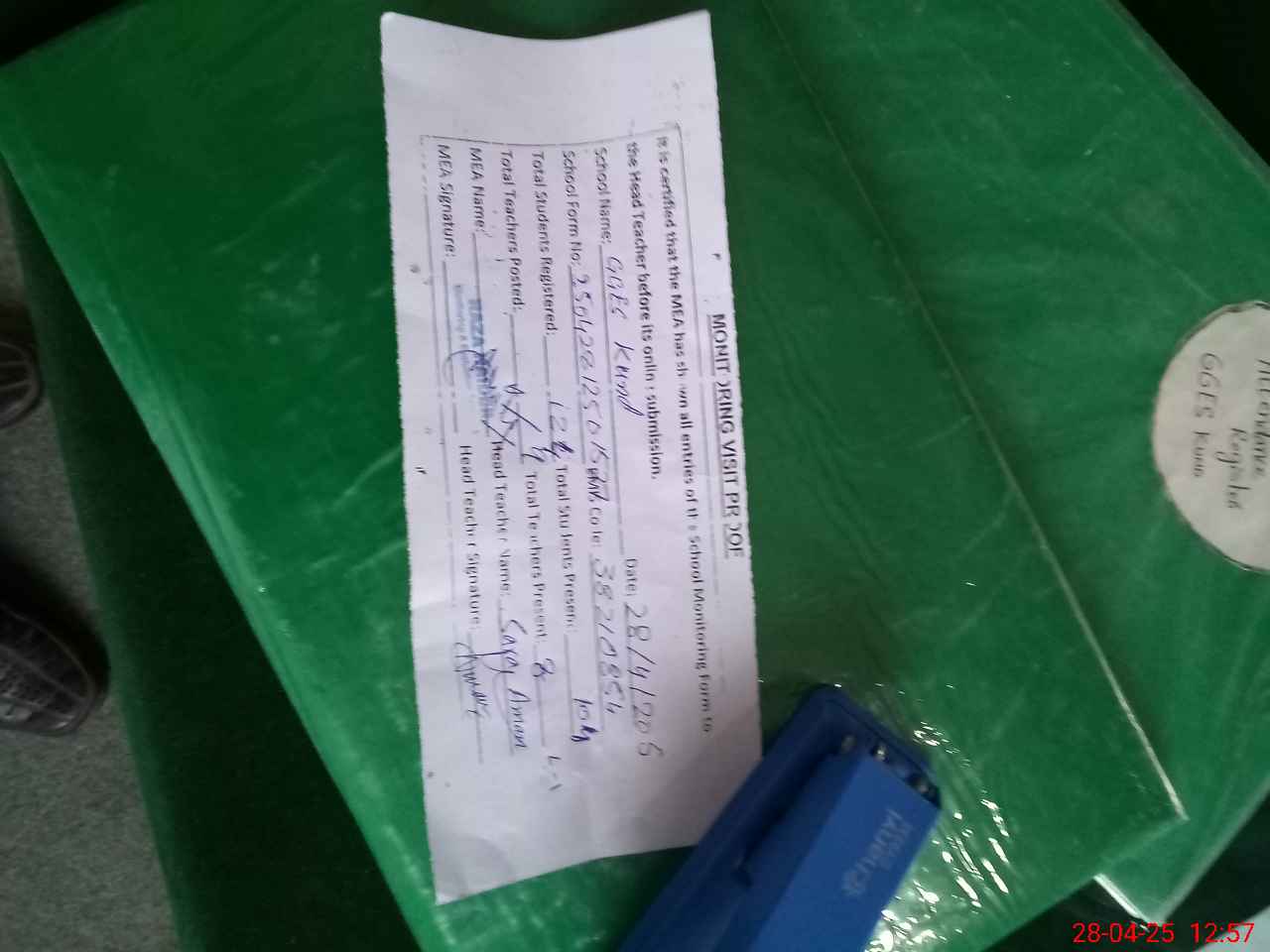 | Attendance Register | Head Teacher | MEA with School | Visit Proof |