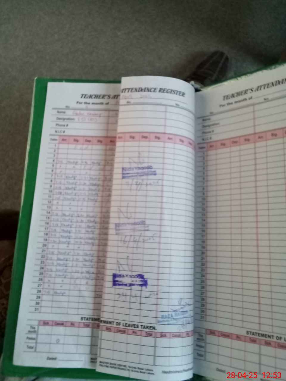 | CNIC | Full Name | Designation | R/C | Absence During Last Calender Month |