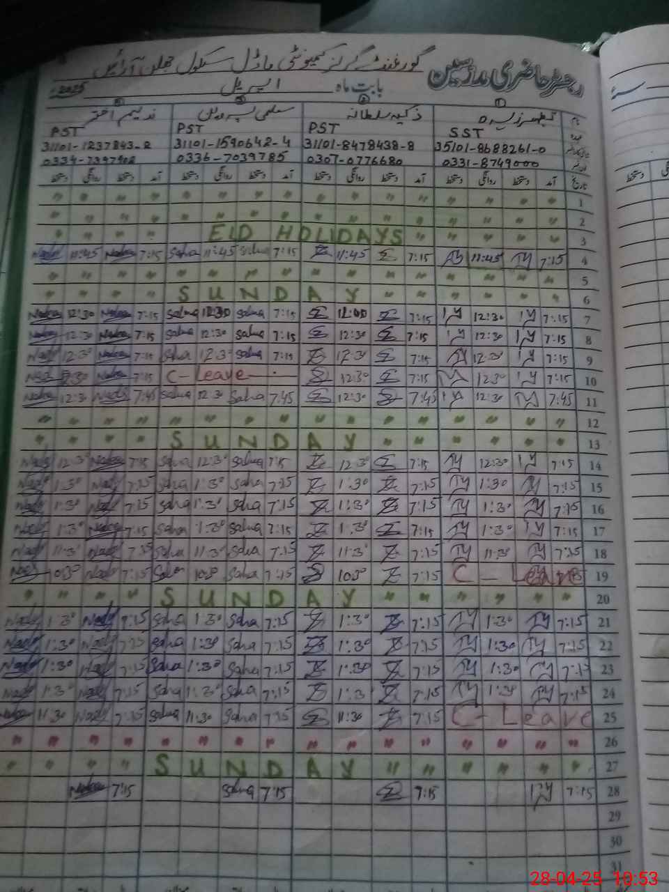 | 31**** | Um**** Ka**** | PST | Regular | 0 | 0 | 0 | 0 | 0 | 0 | 0 | 0 | 0 | Casual |