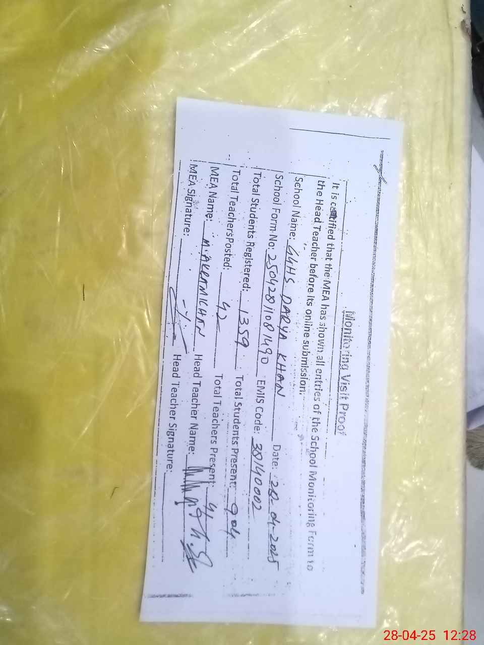 | EMIS Code: 38140002 | Name of School: GGHS DARYA KHAN | |||